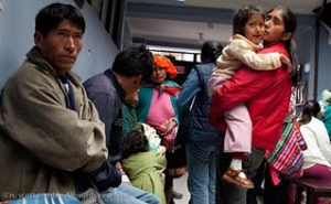 Patients are lined up waiting to be triaged.