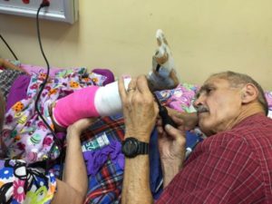 Bolivia with Guy Farris Attaching an Artifical Foot to Her Pylon (1)