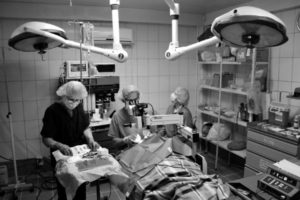 Cherie Shevlin, RN, Dr. Chalmers, and Marlene Lovenguth, CRNA, Performing Cataract Surgery