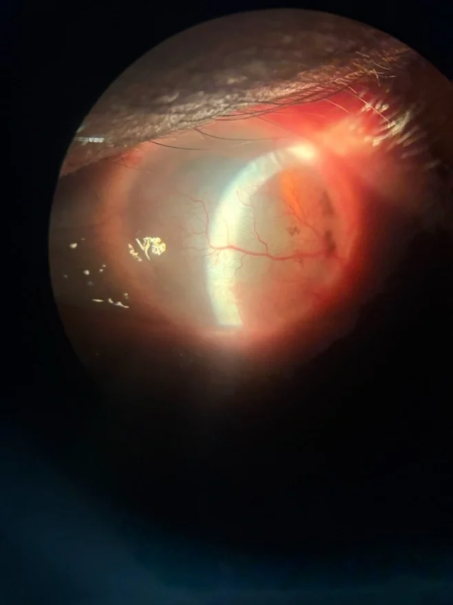 “Pablo” is a 50 year old male patient. He presented with a history of a work related injury where concrete got into both eyes. His vision was “Hand Motion” in both eyes. (Hand Motion means that he can only see shadows of movement.) He had a large neovascular pannus covering both of his corneas. We decided to treat him with oral steroids and doxycycline for 3 days. He returned for a lamellar keratectomy with ocular surface reconstruction. Dr. Jarstad, D.O. carefully and meticulously dissected the neovascular pannus, then sutured the amniotic membrane to the ocular surface. We are hopeful he will regain some functioning vision.